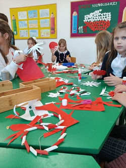 W drugim tygodniu listopada 2021 świetlica w naszej szkole pod opieką nauczycieli realizowała pierwsze z działań Projektu Niepodległa, którego koordynatorem jest Maja Rucińska. Uczniowie by uczcić Święto Niepodległości na warsztatach wykonywali biżuterię w kolorach flagi z korali oraz barwnego makaronu. Zrobiliśmy również z papieru narodowe kokardy, które ozdobiły galowe stroje. Także nasze sale zyskały wyjątkowe dekoracje oraz okolicznościowe gazetki. Zajęcia te przyniosły dzieciom dużo frajdy i przyczyniły się do radosnej i wyjątkowej atmosfery. Serdecznie dziękujemy za Wasz udział, zaangażowanie i zapraszamy do realizacji dalszych zadań.