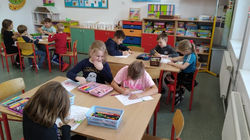 W październiku w ramach Ogólnopolskiego projektu "EUROPA I JA" pierwszaki zapoznały się z podstawowymi informacjami o Italii oraz zespołowo wykonały flagę Włoch. Będzie to stała dekoracja w naszej świetlicowej sali w czasie realizacji całorocznych zadań projektowych.
